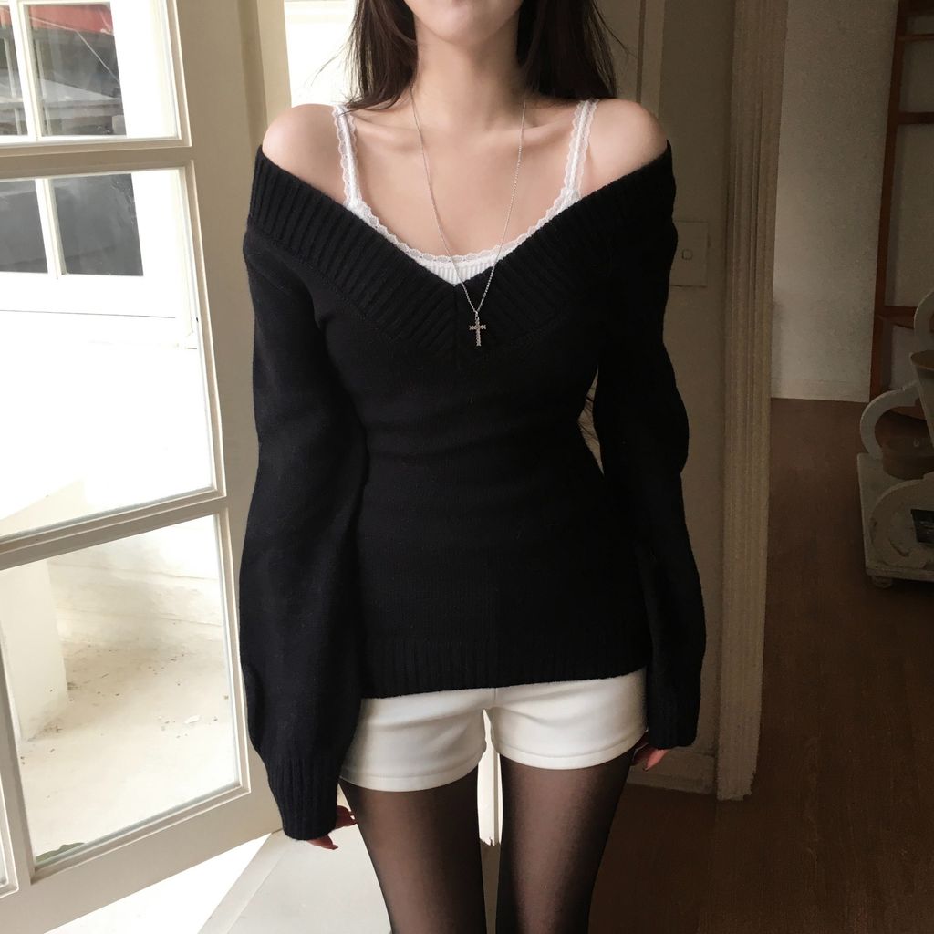 𝐰𝐢𝐧𝐭𝐞𝐫 𝐑𝐎𝐒𝐄❄️遮手臂OK版型超性感的長版V字厚質針織上衣(3color)