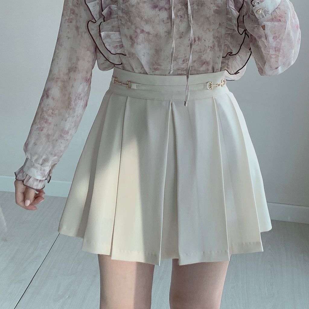 公主系列👸真的高質感款💙兩側金鏈腰帶半彈性西裝大摺褲裙 (2color)