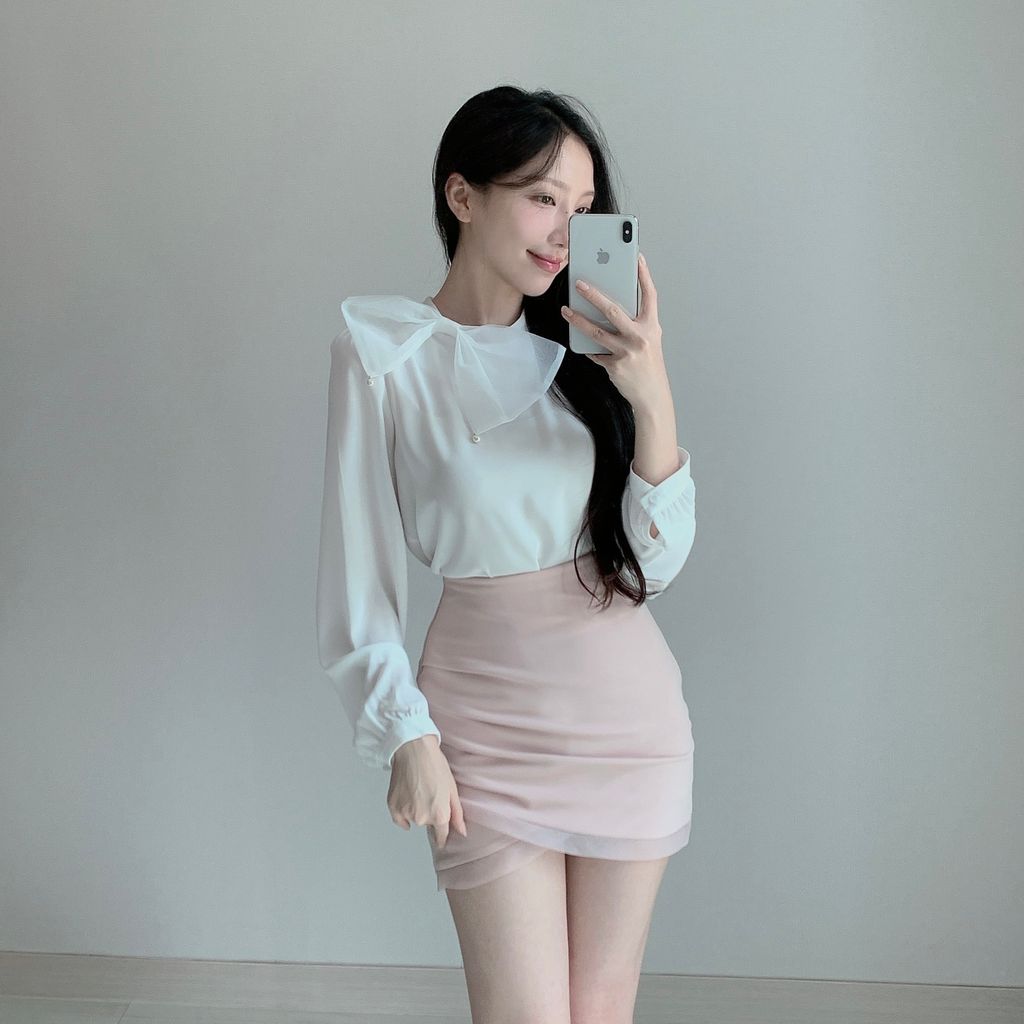 安𝒑𝒊𝒄𝒌🫧精緻歐膩感💗側邊紡紗蝴蝶結🎀領珍珠雪紡blouse (3color)