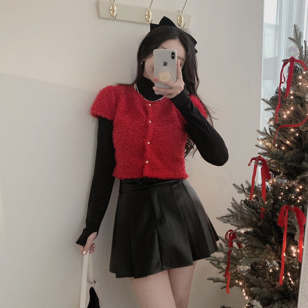 Christmas🎅必買柔軟毛毛❤️ Poodle 毛毛金釦短袖上衣外套
