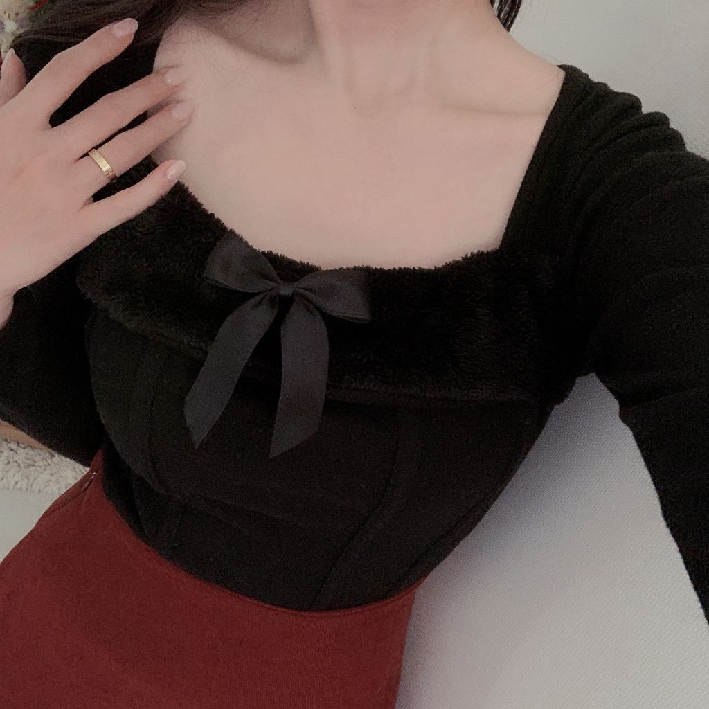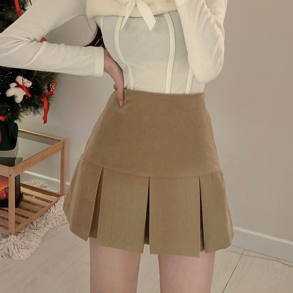 𝐰𝐢𝐧𝐭𝐞𝐫 𝐑𝐎𝐒𝐄❄️冬季氛圍穿搭☃️拼接毛毛蝴蝶結🎀上衣+ 燈芯絨混棉大摺褲裙+ 羔羊機車無袖背心外