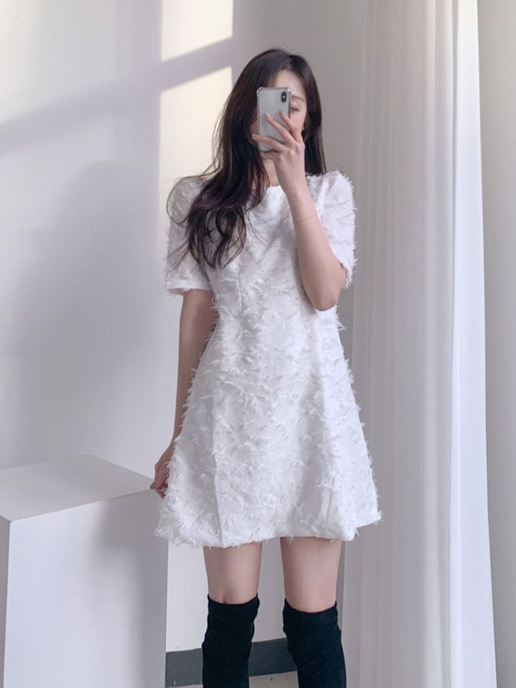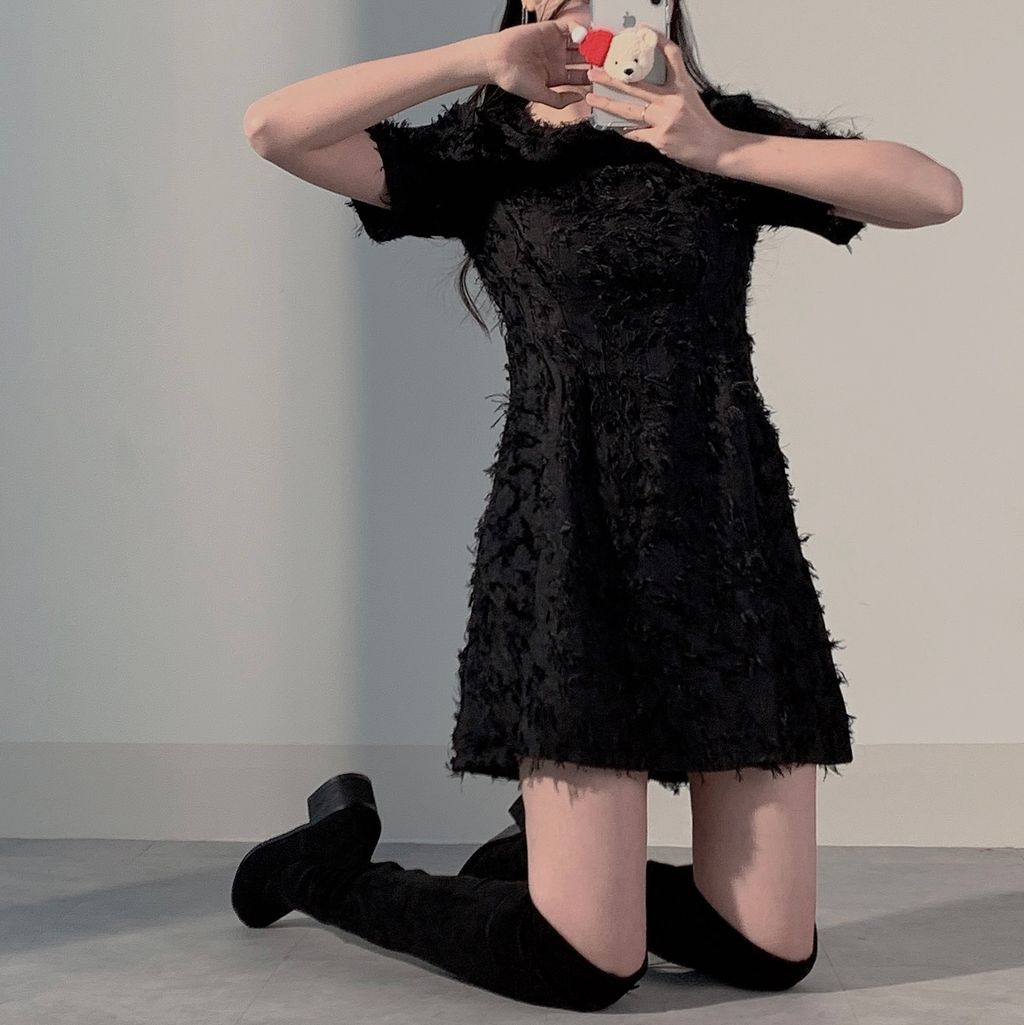 Christmas🎅現貨大特價🔥 [기획] 기털 반팔원피스♡羽毛感短袖小洋裝(3color)