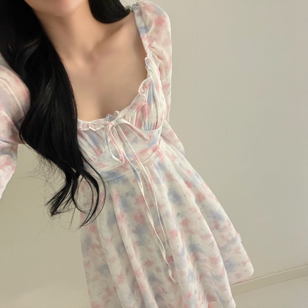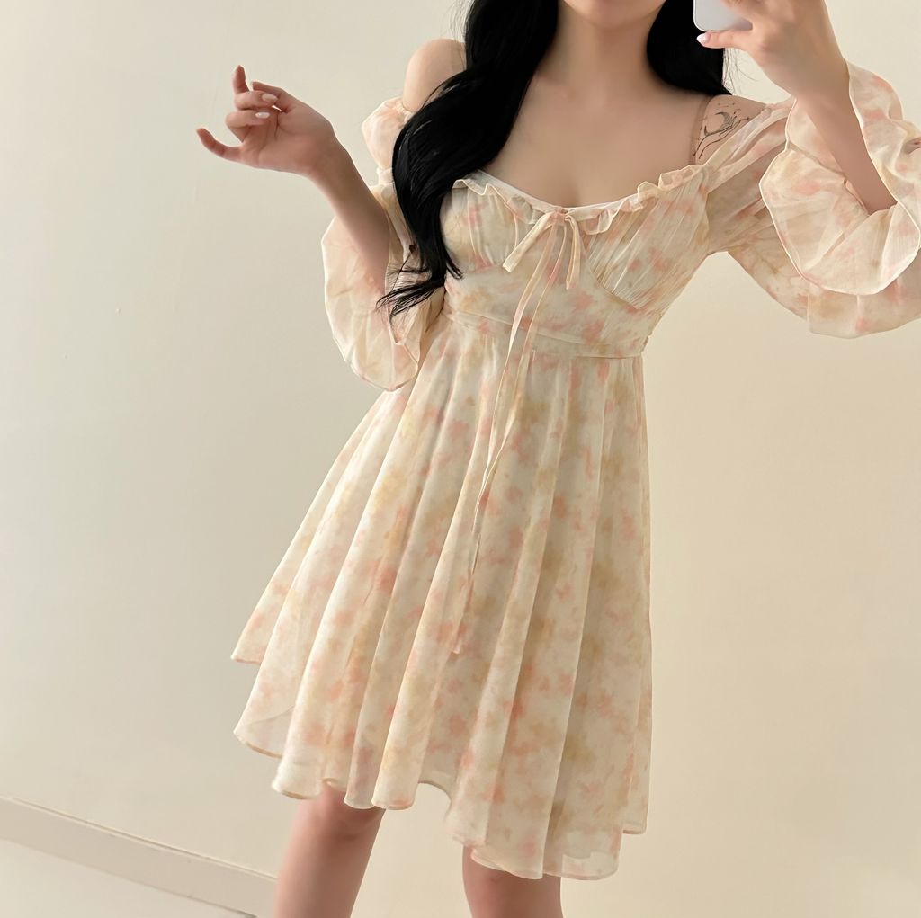 50%SALE🔥粉橘現貨最後一件🔥背後半彈性高端質感*.*CANDY糖果花色🍬淡淡繽紛感雪紡公主洋裝