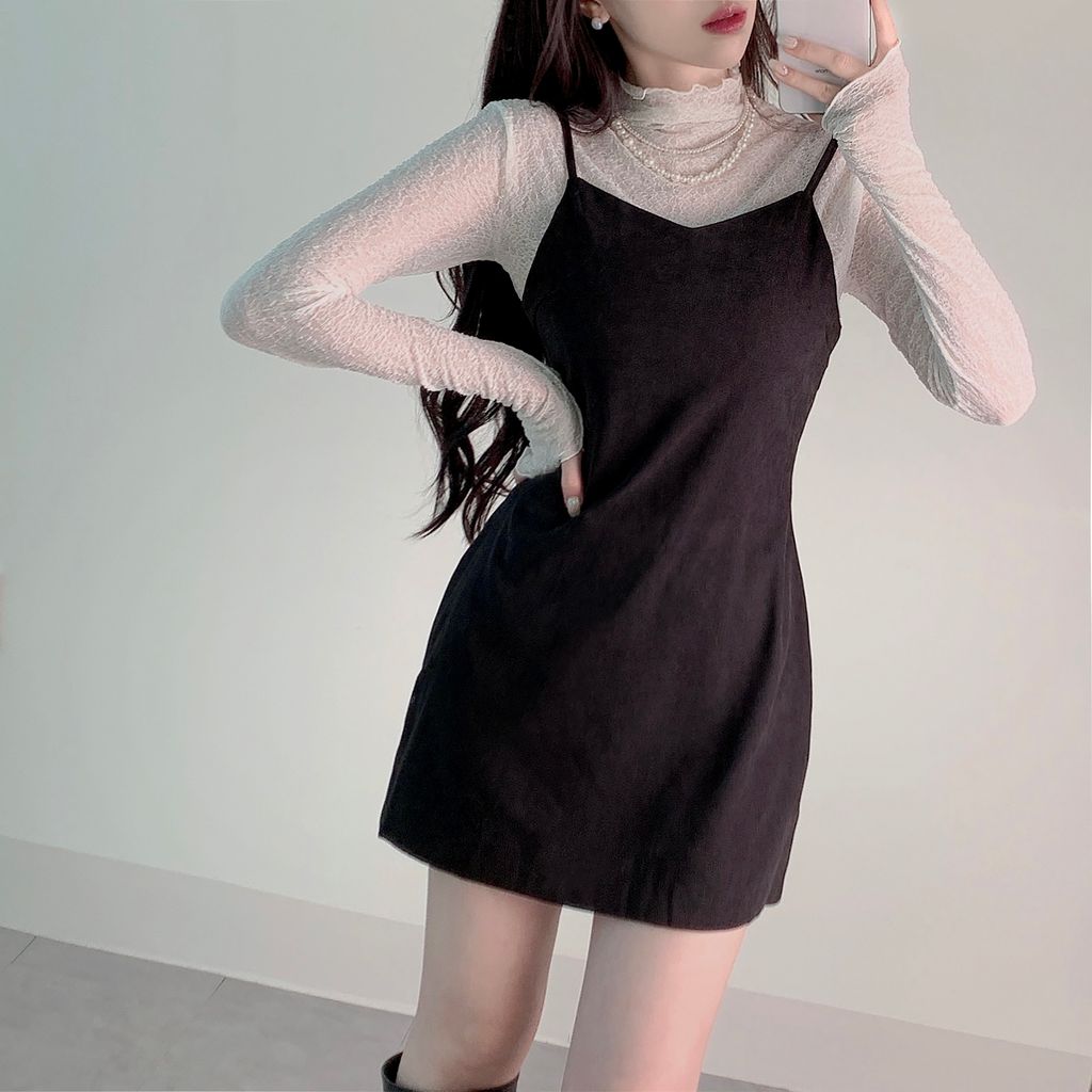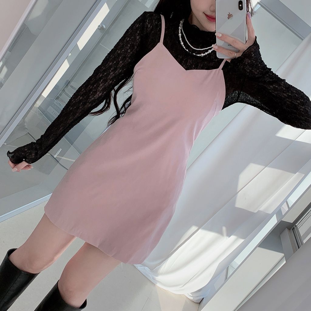 30%SALE🔥[黑色M最後一件現貨!! ] 러브나시 미니 원피스/ 甜美系微V外搭細肩小洋裝
