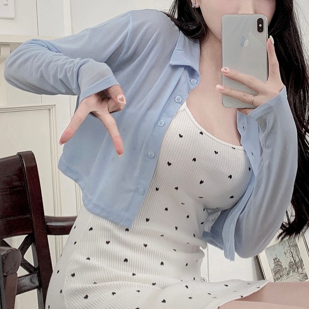 50%SALE🔥*米色最後現貨* [強推商品💙] 교복셔츠 카라 크롭 뒷트임 가디건/ 短版校服襯衫背線開岔小外套