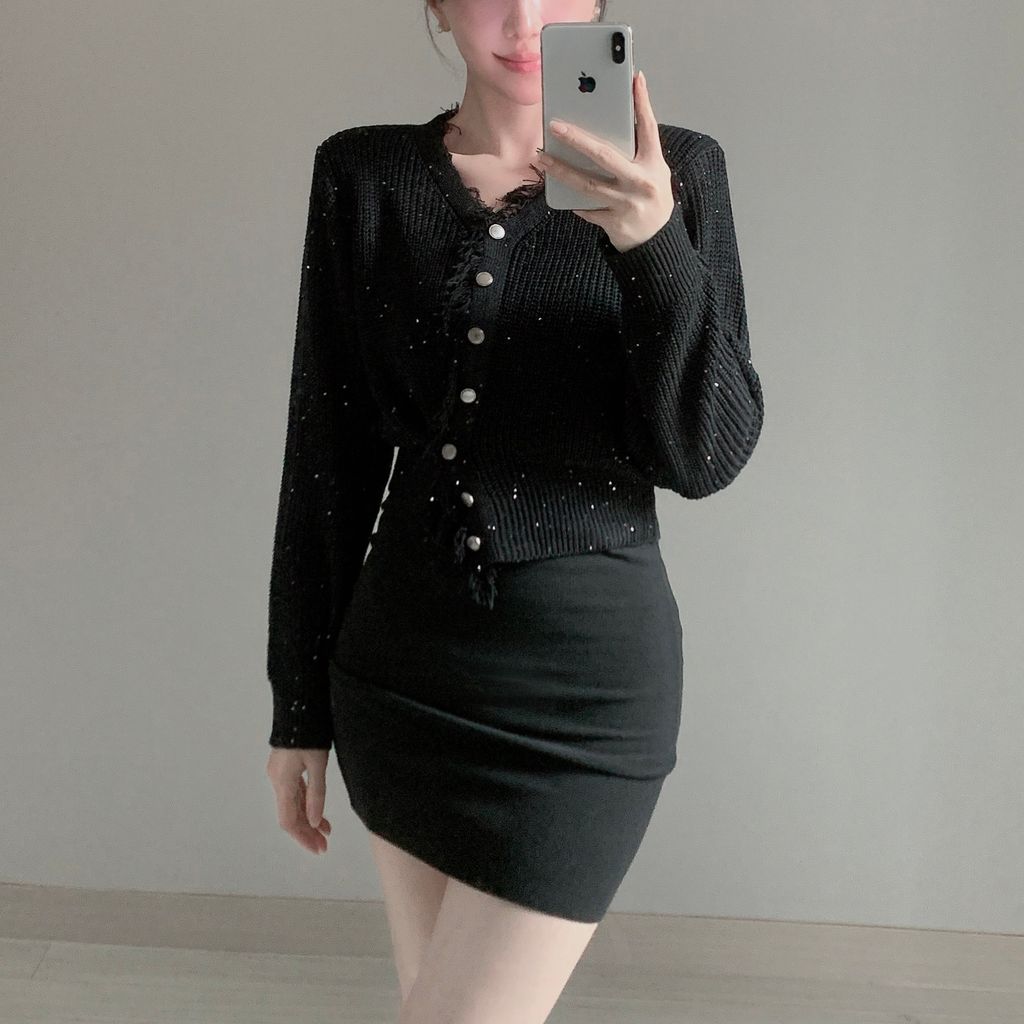 安𝒑𝒊𝒄𝒌🫧歐膩LOOK🕶️一秒直角肩💗斜腰釦🔥小亮片星星高磅毛邊針織外套 (2color)