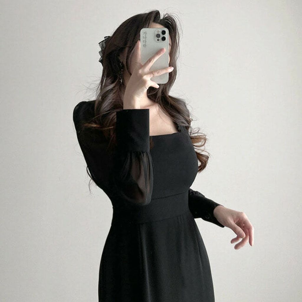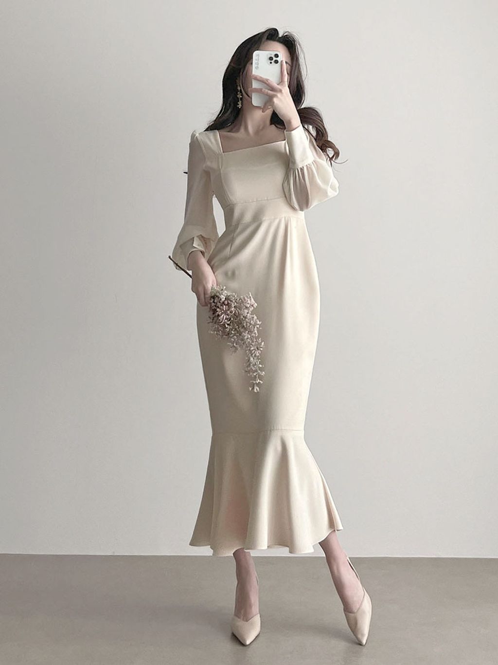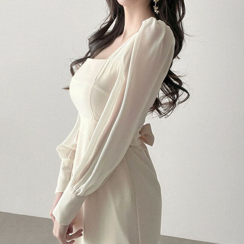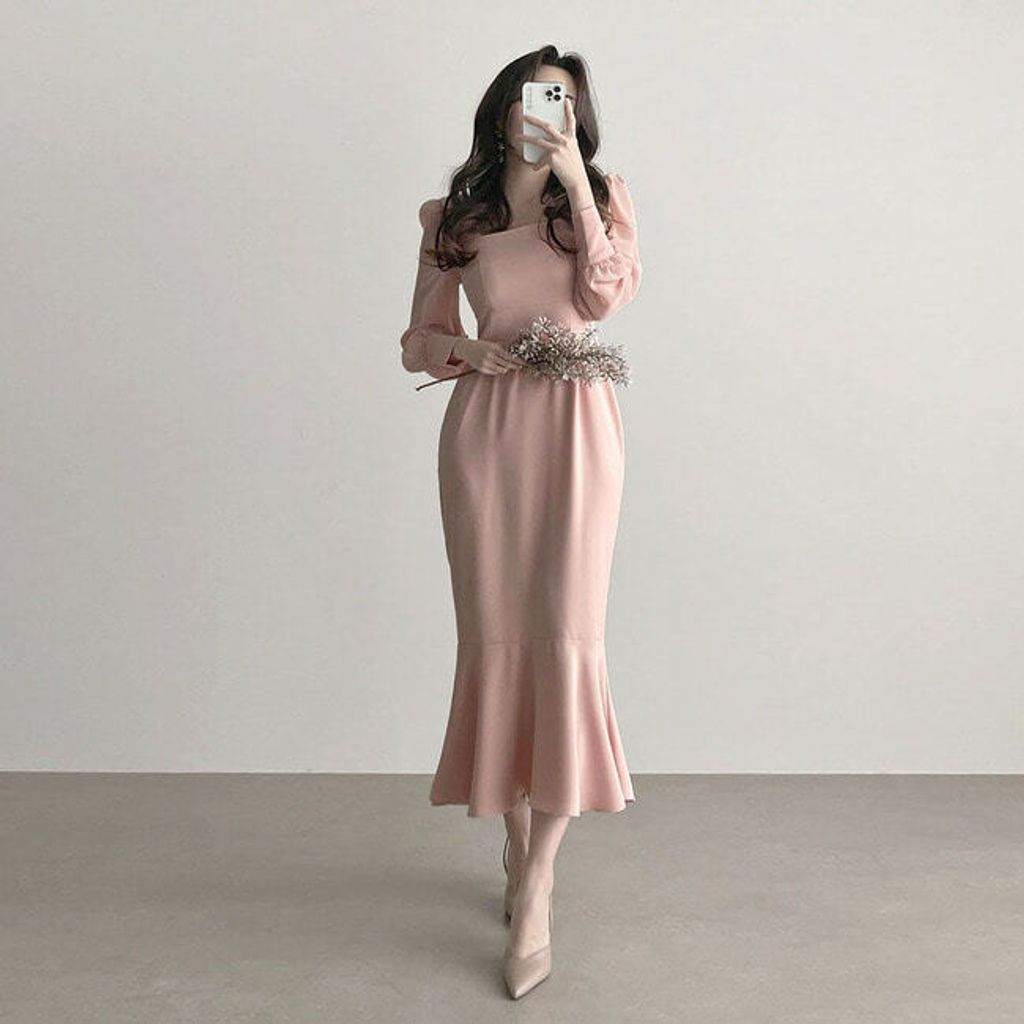 BEST! [高端材質👰參加婚禮推薦♥] 아델여신 라인 롱원피스/ 大方領拼接雪紡長魚尾洋裝