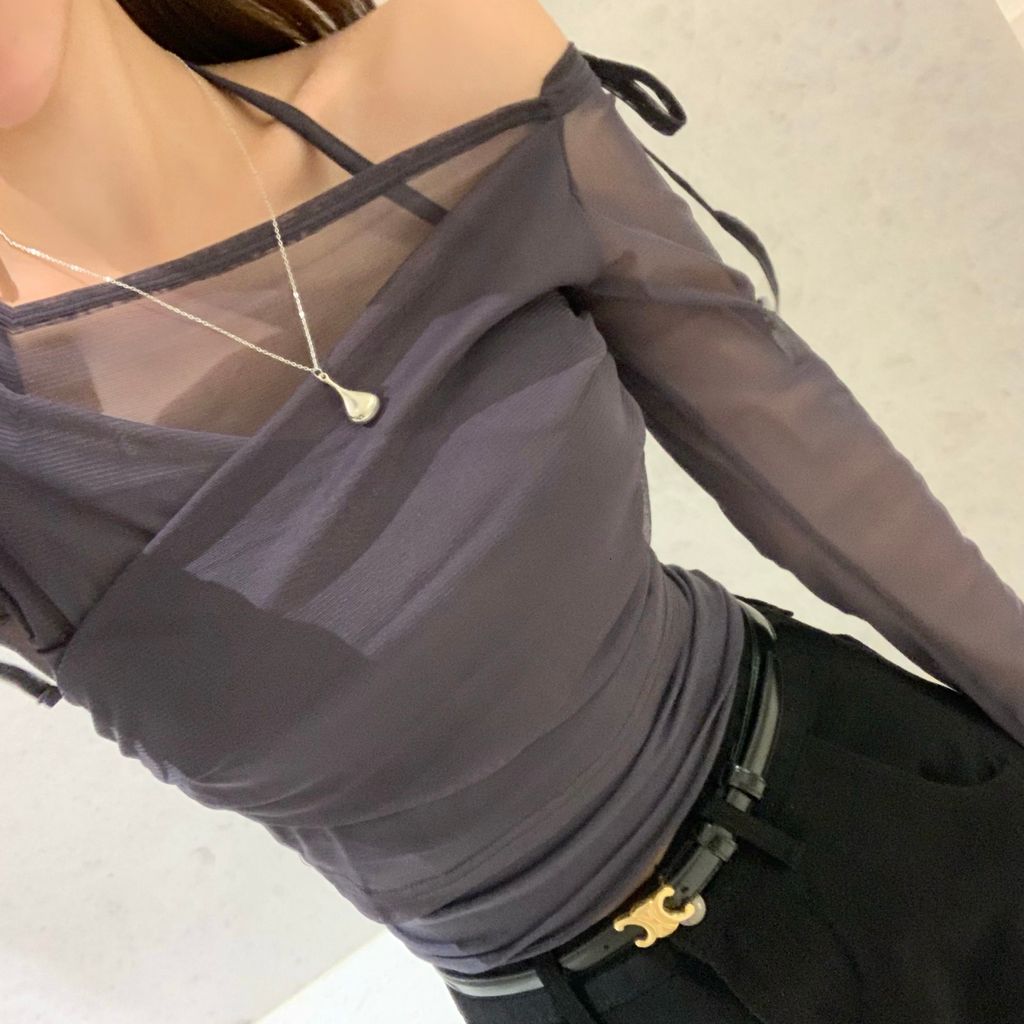 여리여리한 무드의 시스루 랩 티 + 홀터 나시 세트