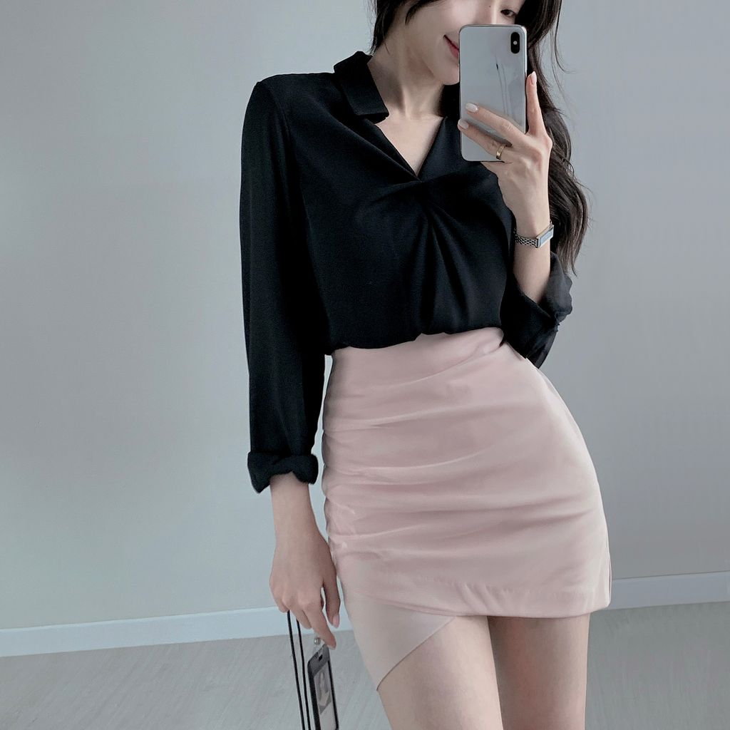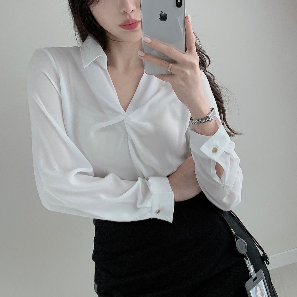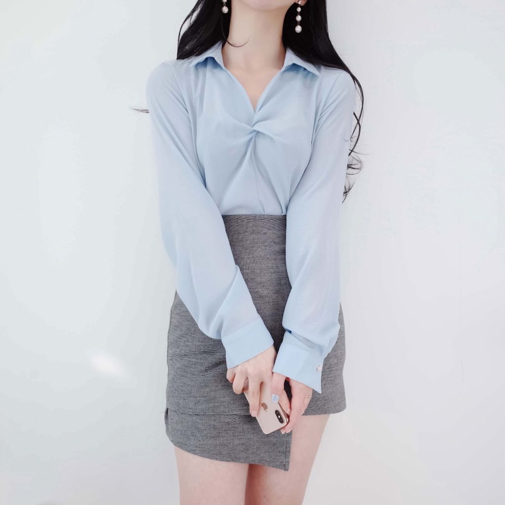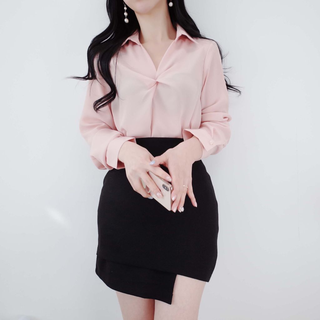 安𝒑𝒊𝒄𝒌🫧上班也要歐膩OL look💼開衫領率性扭結襯衫Blouse (4color)