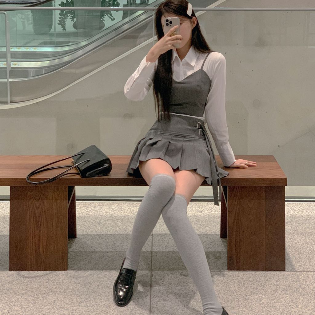 春季TOP1熱銷推薦* 一穿即時髦🔥外搭西裝布料小背心+ 雙腰帶百褶裙 SET (3color)