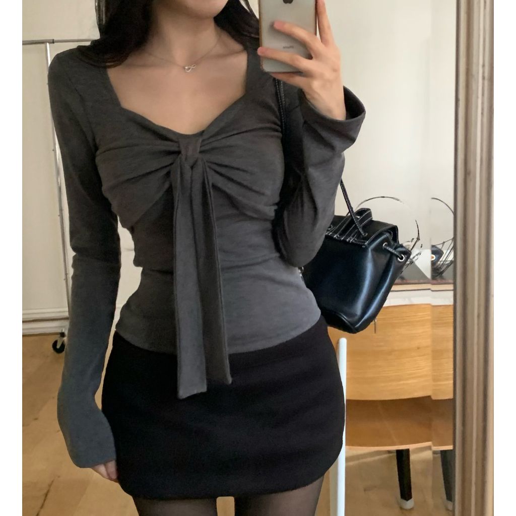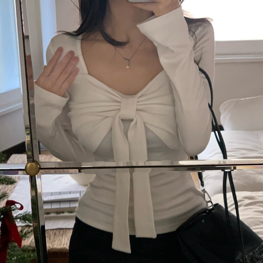 韓製高質感保障🇰🇷胸前綁帶蝴蝶結內刷毛上衣