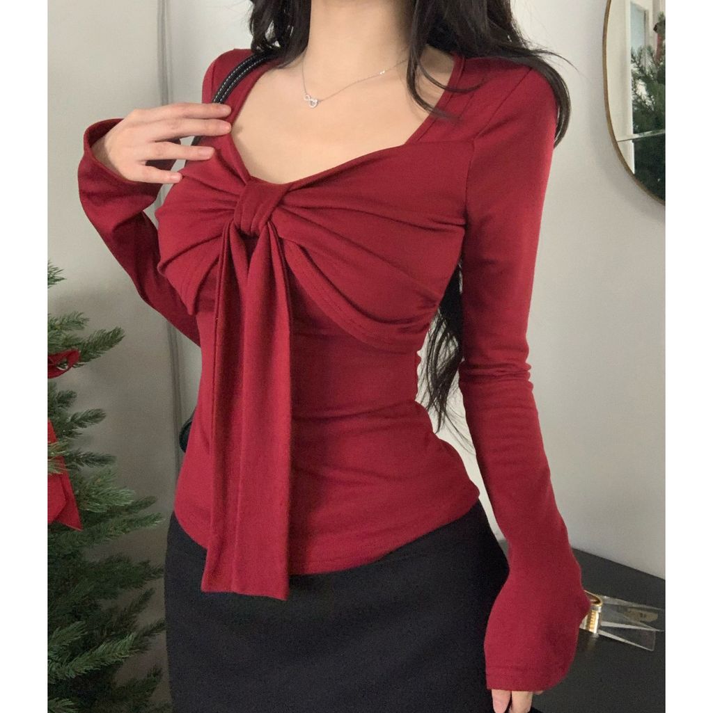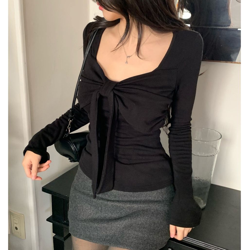 不用準備禮物🎅因為我就是禮物🎁韓製高質感保障🇰🇷胸前綁帶蝴蝶結內刷毛上衣(4color)
