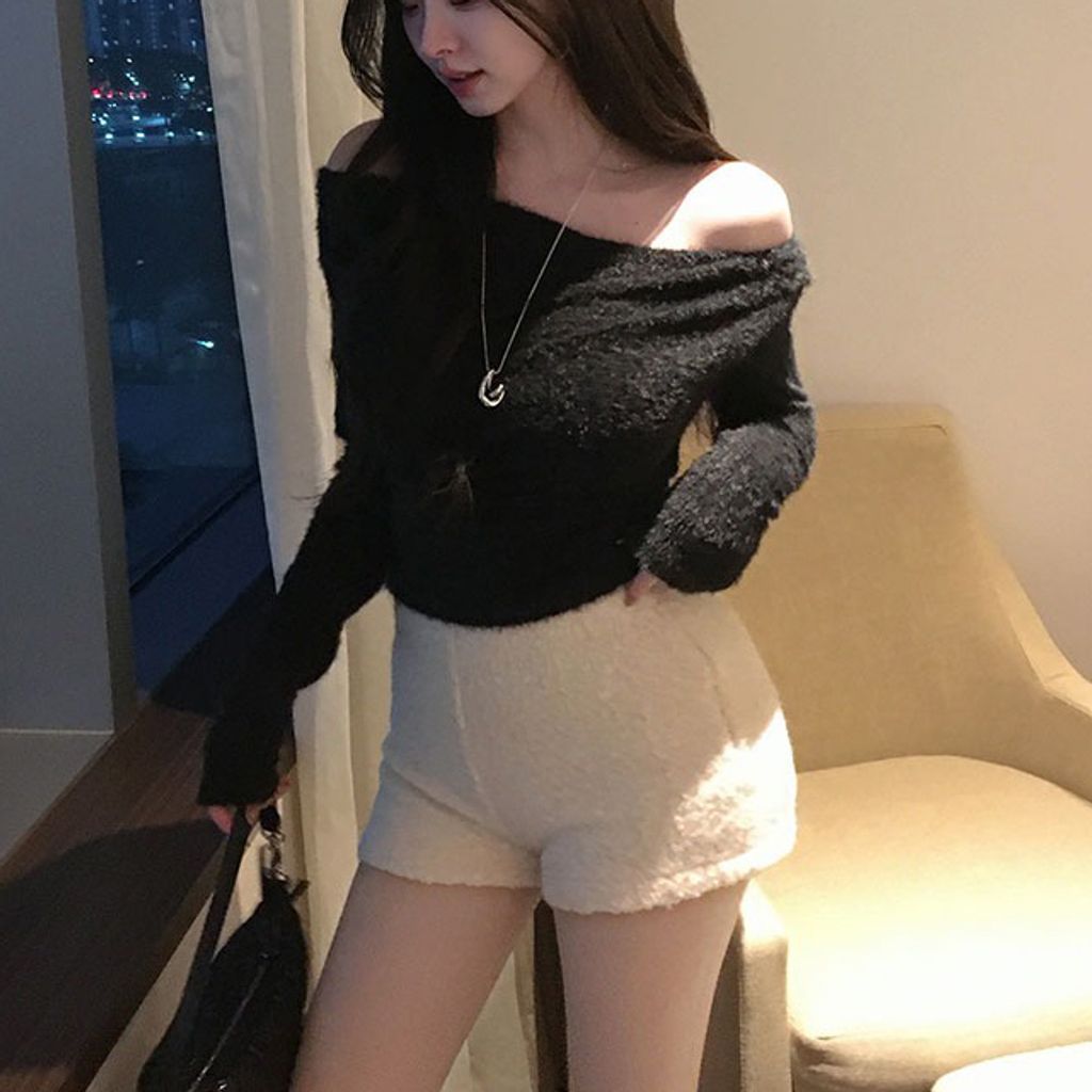 直男男友冬季 1𝒑𝒊𝒄𝒌!!🕺甜美性感🐈馬海毛親膚不規則斜皺彈性上衣 (3color)