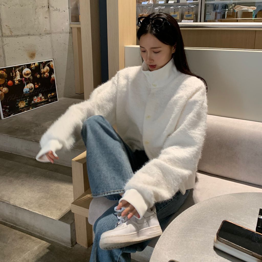 𝐰𝐢𝐧𝐭𝐞𝐫 𝐑𝐎𝐒𝐄❄️跟男友一起穿💗Over-fit🔥暖暖毛質高領排釦針織毛衣外套 (3color)