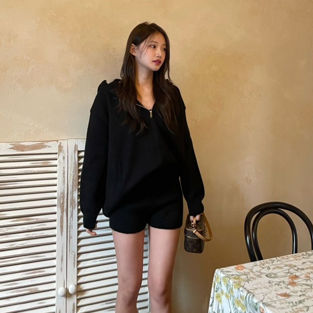男友𝒑𝒊𝒄𝒌!!🕺韓國熱銷🔥pinterest歐美歐膩風🖤精挑厚質感超級寬鬆針織連帽外套+針織短褲SET (2color)
