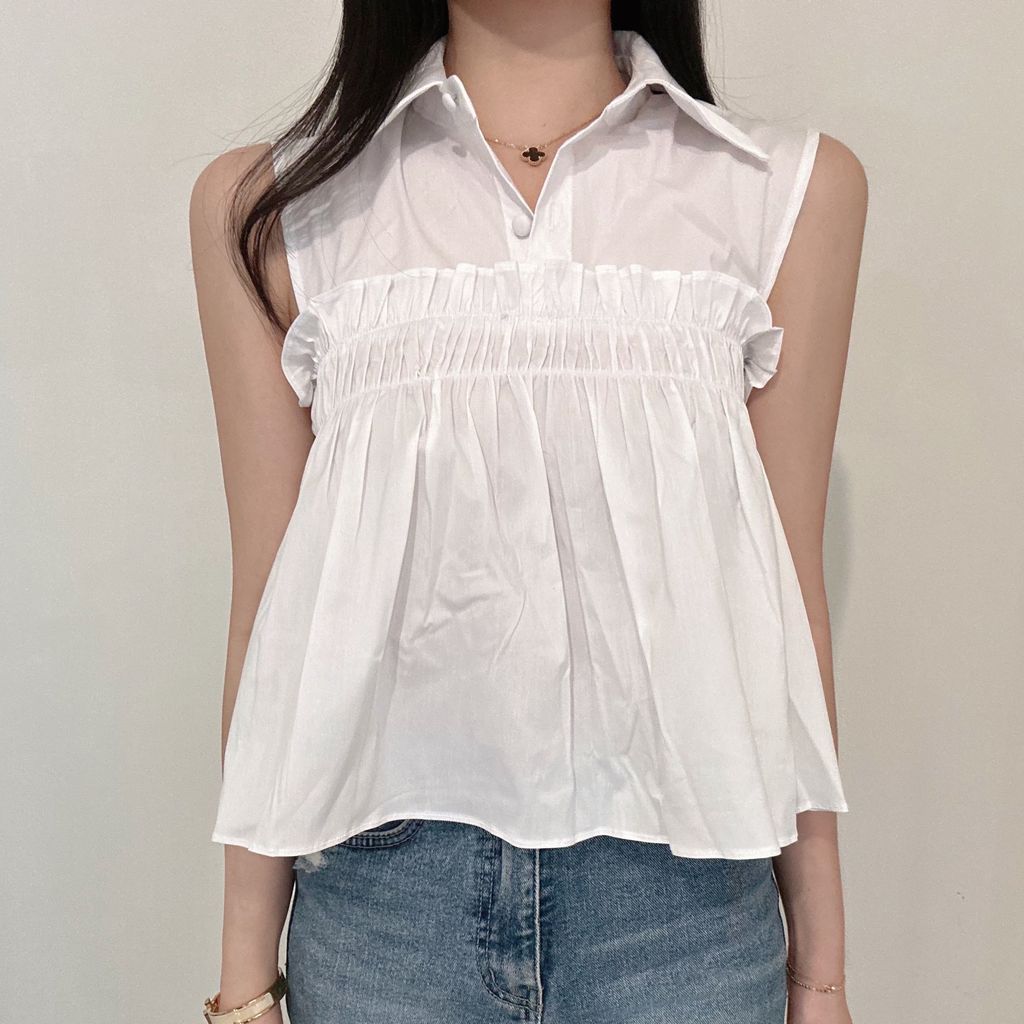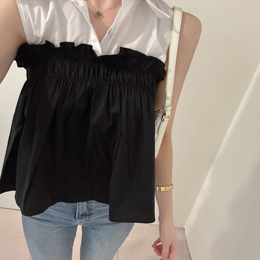 最後一件現貨🌟搭配牛仔褲自動好身材🕶️彈性S~L💗微長版傘狀無袖雙色襯衫blouse (2color)