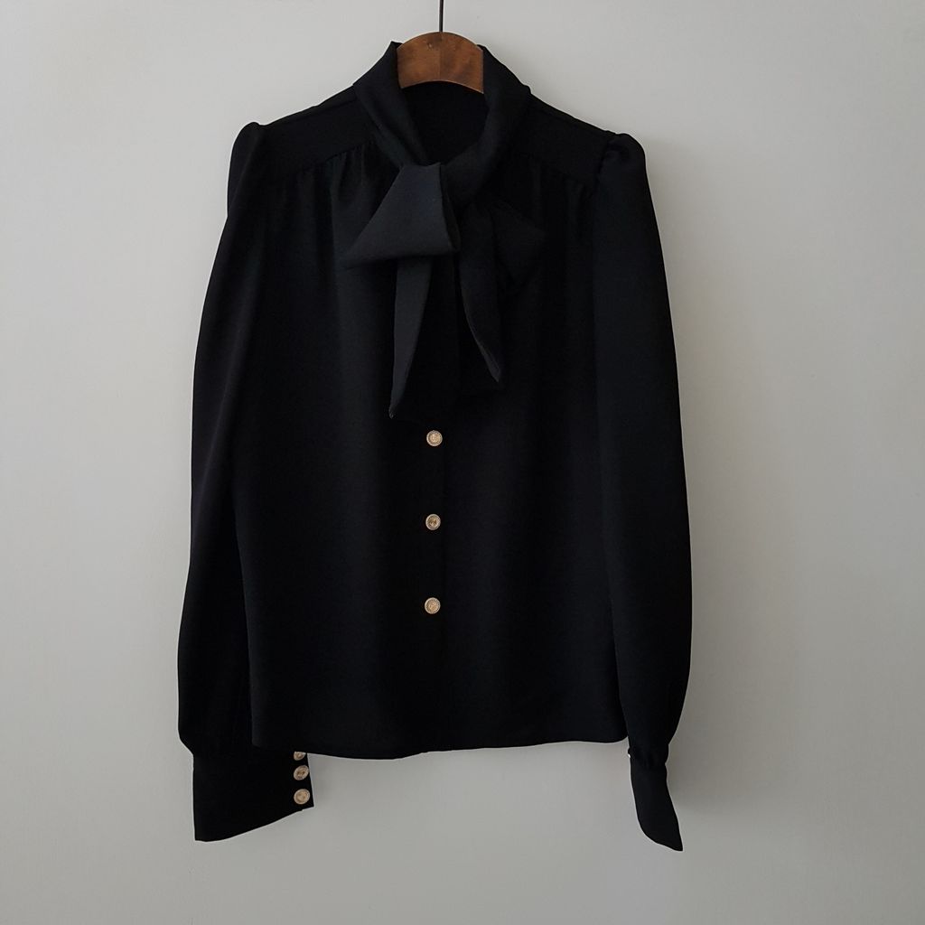 歐膩公主st💗修飾肩線高端版型🌹雪紡金色精緻鈕扣blouse (2color)
