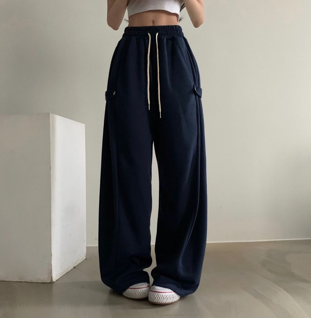 韓製超寬褲🇰🇷側邊修飾釦帶연습생練習生休閒褲