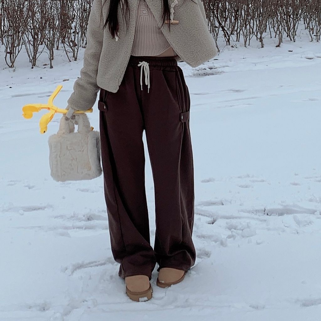 20%SALE🔥超推熱門款🔥[一般/內刷毛Ver.] 韓製超寬褲🇰🇷側邊修飾釦帶연습생練習生休閒褲 (9color)