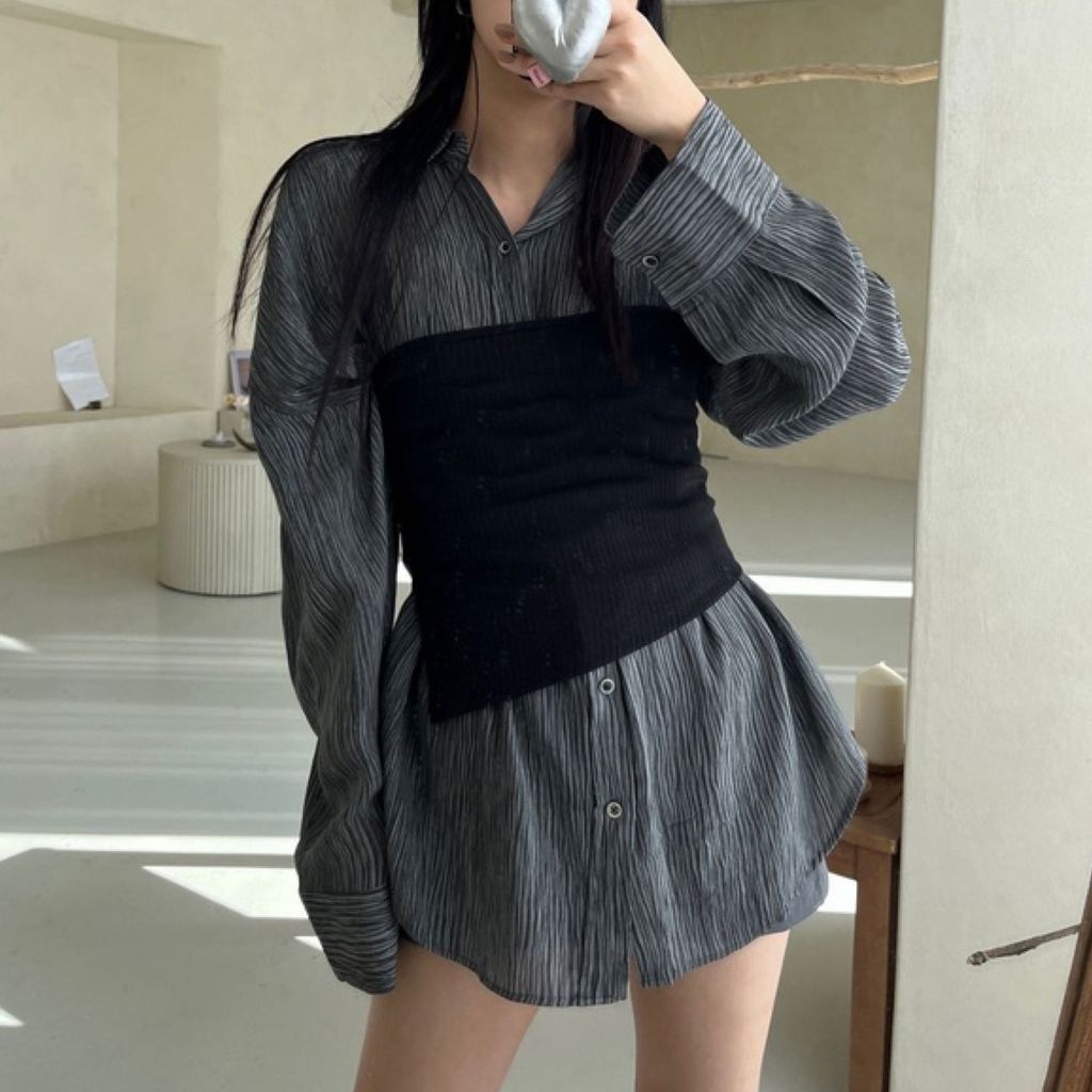 布料的部分做直線的壓紋,視覺上更加修身修飾身材~❤️