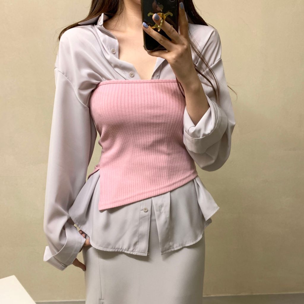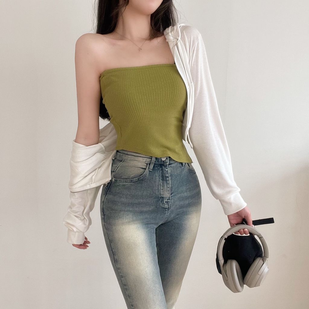 包色款🫶 超顯瘦夏季斜角壓紋長抹胸 (5color)