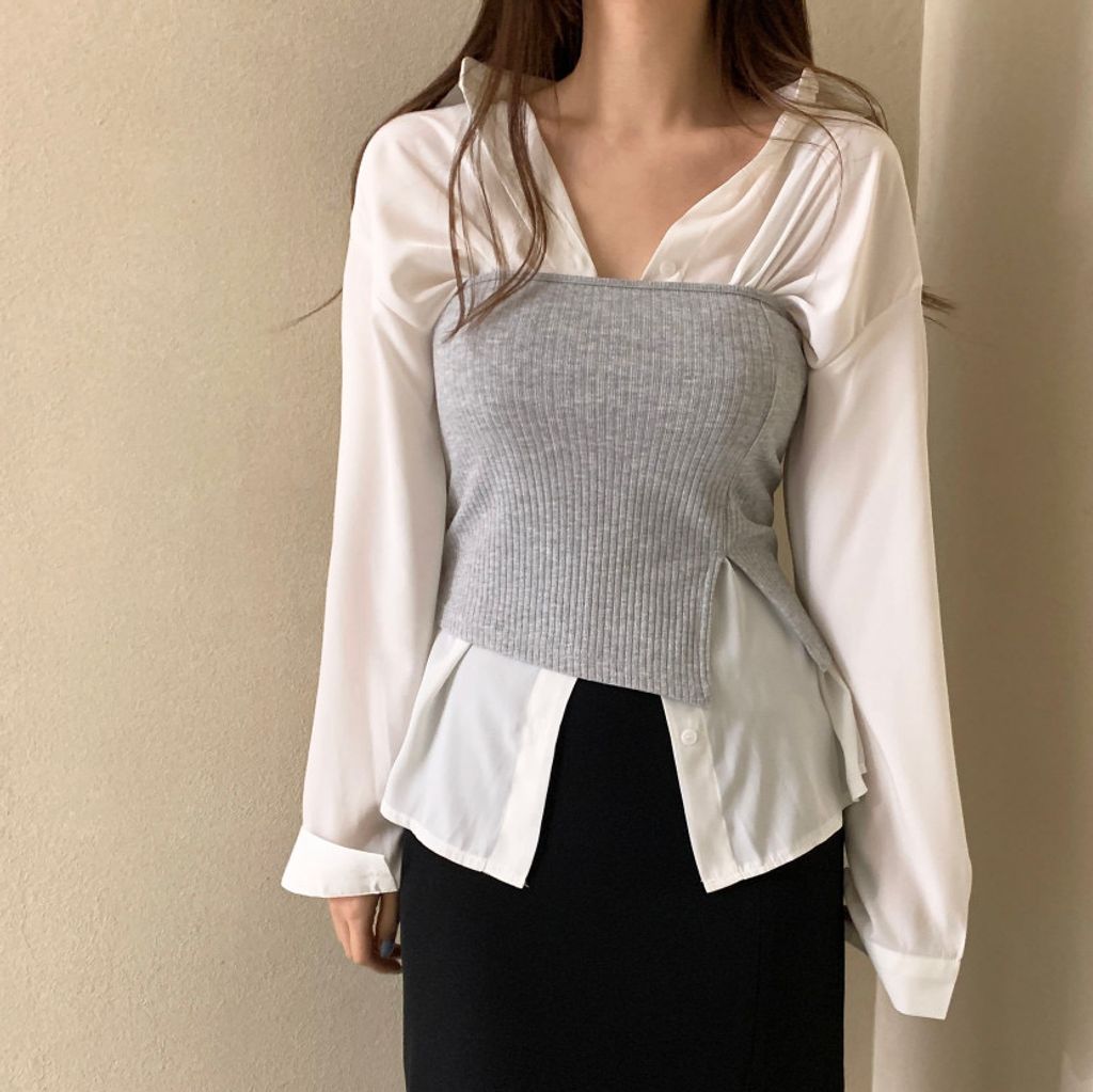 下擺處做出斜角的感覺再開一個岔!搭配褲裝超級無敵顯瘦的版型
